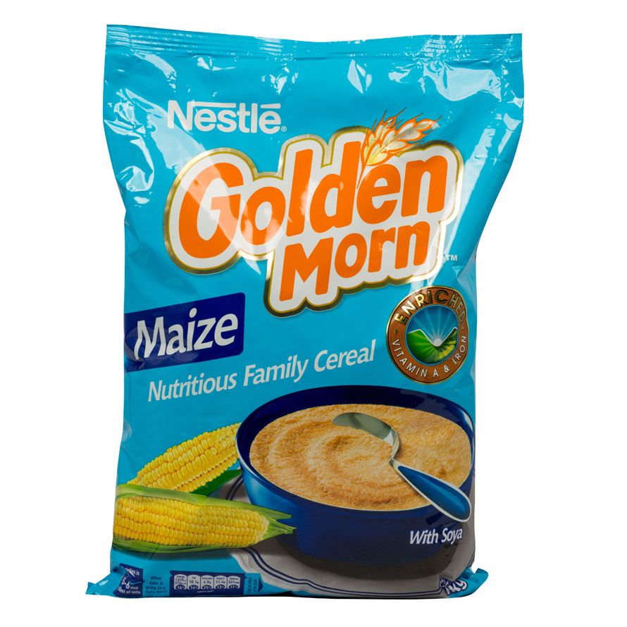 Golden morn corn cereal is a nutritious, delicious and filling cereal made from locally sourced whole grains. It containts over 0% of whole grains in each pack and is fortified with essential ingredients such as Vitamin A and iron.